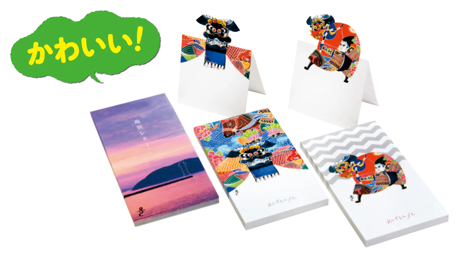香川で盛んな獅子舞や、灯台・船など、それぞれのモチーフが立ち上がる仕様のユニークメモ●四国ショップ88でも買えます!