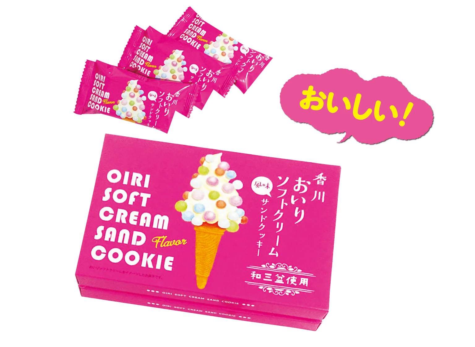 香川名物のおいりソフトクリームがサンドクッキーに。個包装でバラマキみやげにも◎