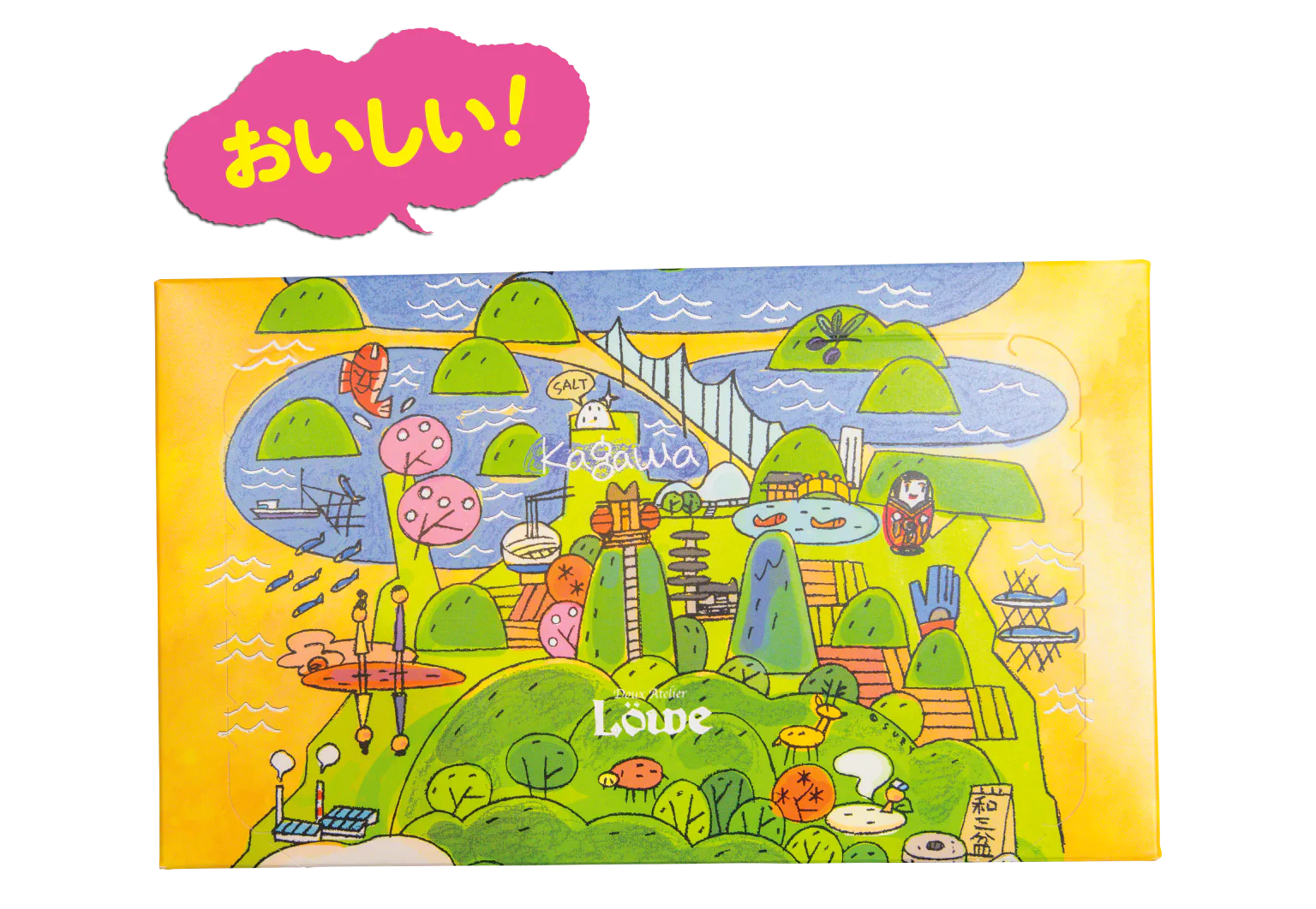 和三盆を使った焼き菓子セット。讃岐の名所や特産品が描かれた限定パッケージにも注目