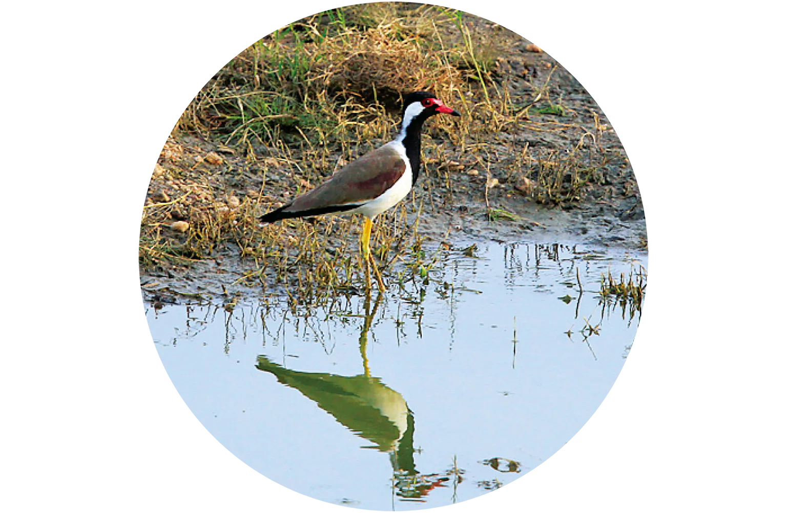 ①左右をよく見て動物を探そう/②国立公園入口近くにもゾウを発見/③インドクジャクのオスは鮮やかな羽毛が美しい/④水辺には渡り鳥がいることも