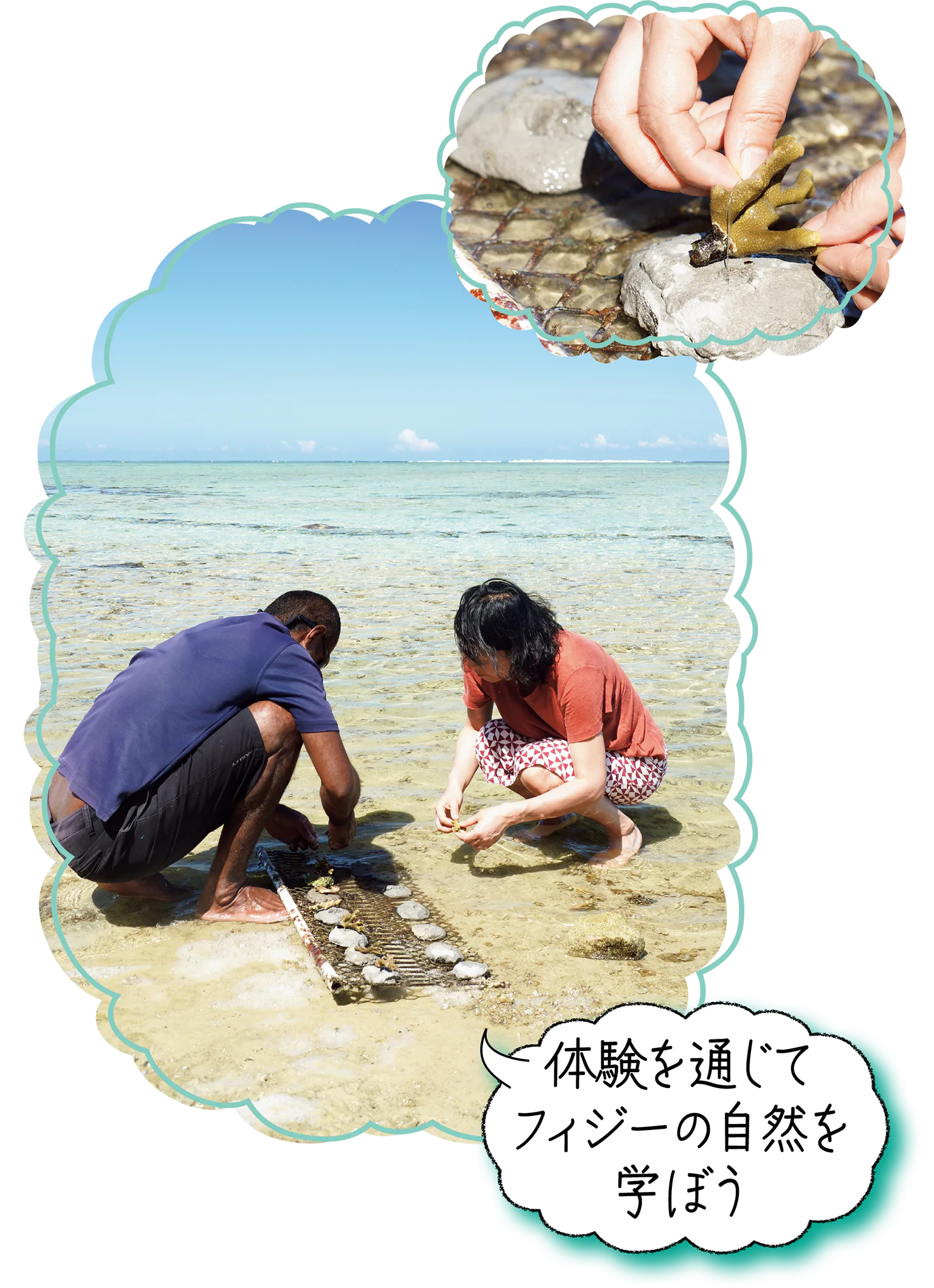 サンゴの苗植えやマングローブ植林、フィッシュハウス作りなど、フィジーの生態系に触れる体験型プログラムも用意されている(有料)。