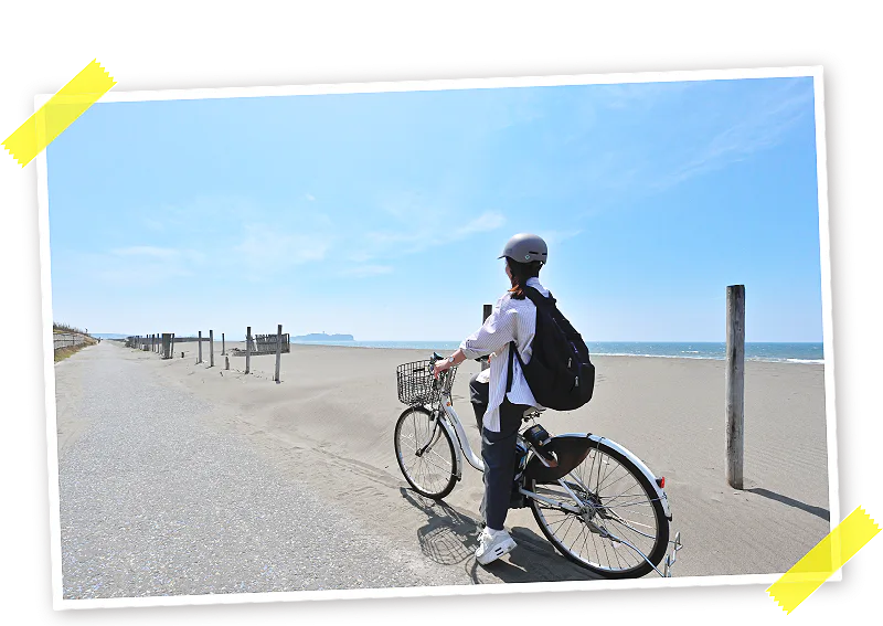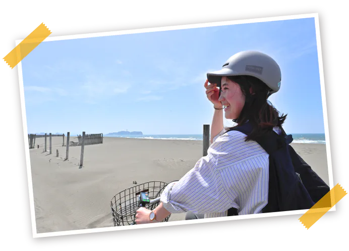 茅ヶ崎の人気のスポットをハシゴしながら、波打ち際をのんびりサイクリング。お天気がよければ富士山が見えるので、自転車を止めて波音を聞きながらゆっくり眺めるもよし。