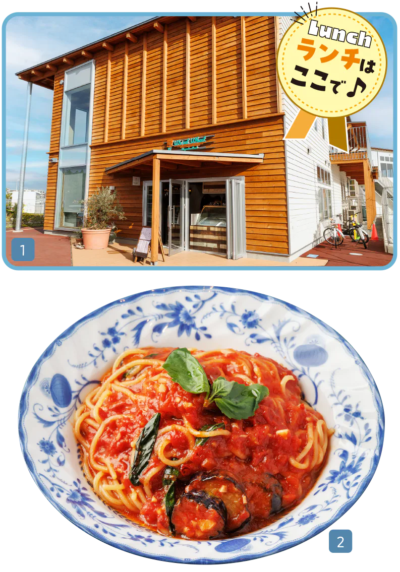1.藤沢市立鵠沼海浜公園内にある/ 2.イタリア産トマトと青森県産ニンニクのポモドーロ1518円