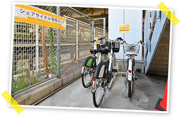 スマホで簡単に利用できるシェアサイクル。ロゴがある無人ステーションであればどこでも借りられてどこでも返せる。自転車はシティサイクル、スポーツタイプ、e-Bikeタイプの3種類。利用前にアプリをダウンロードしておこう。
