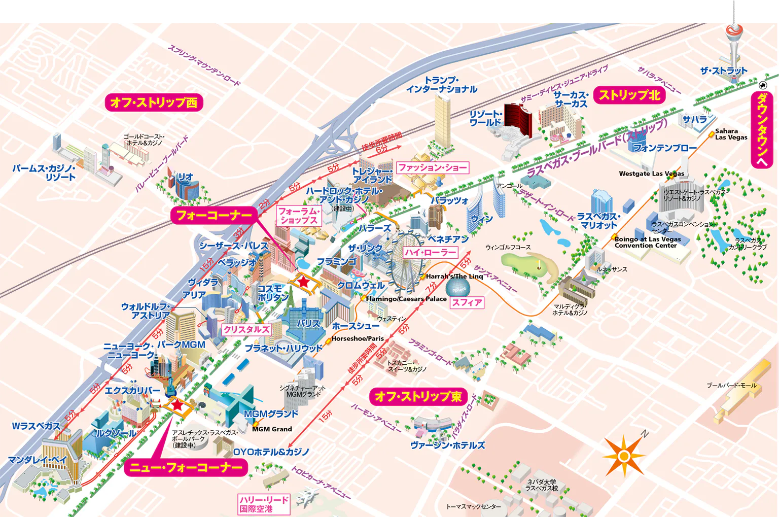 初めて旅するラスベガス、まずは市街地6エリアの位置関係と特徴を把握しよう!