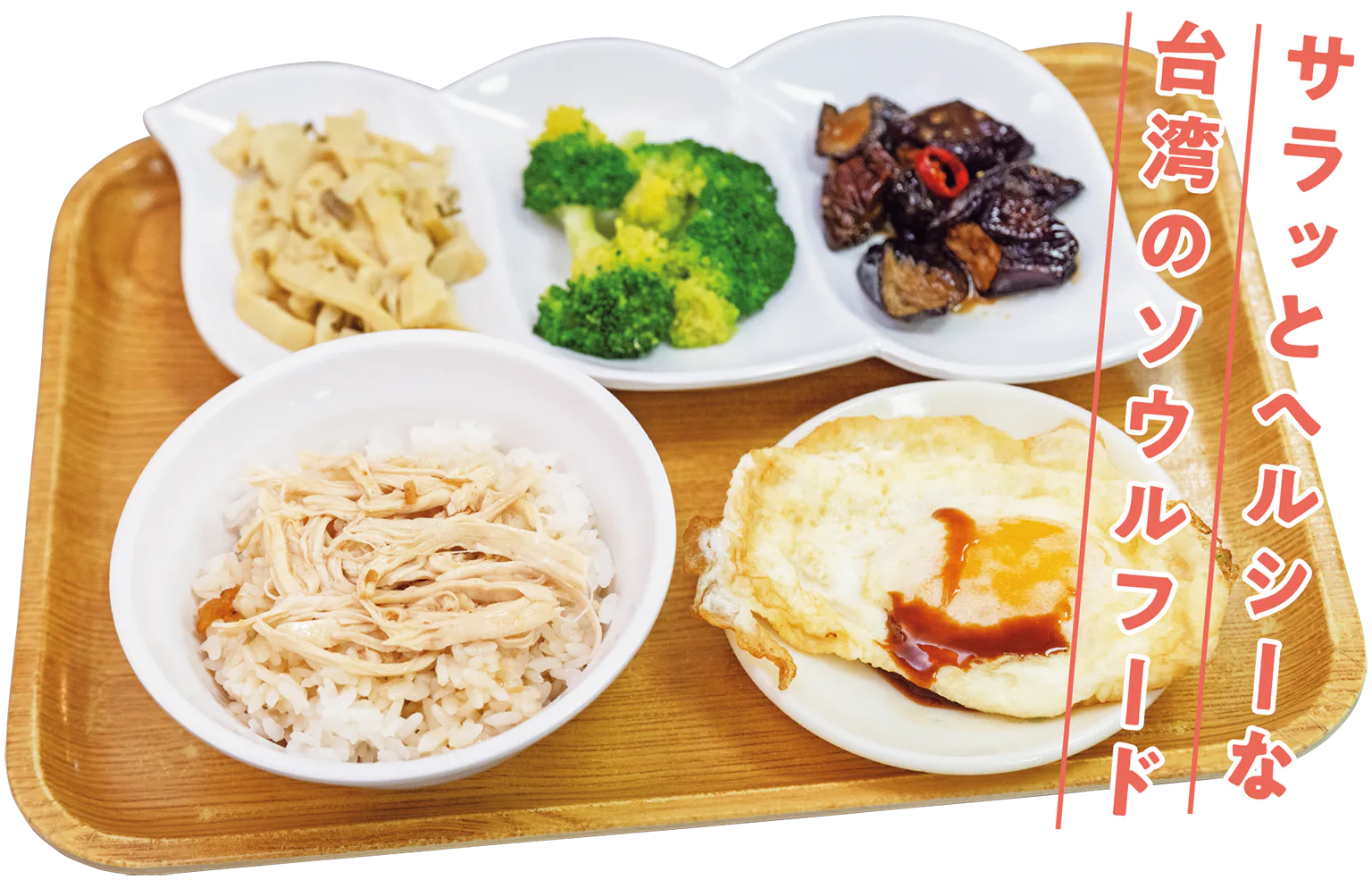 台湾の定番ご飯の一つ、鶏肉飯の人気店。看板メニューの鶏肉飯は、おかず3品と合わせて食べる定食スタイルで提供。鶏肉とタレをご飯とよく混ぜて、魅惑のハーモニーを楽しもう。