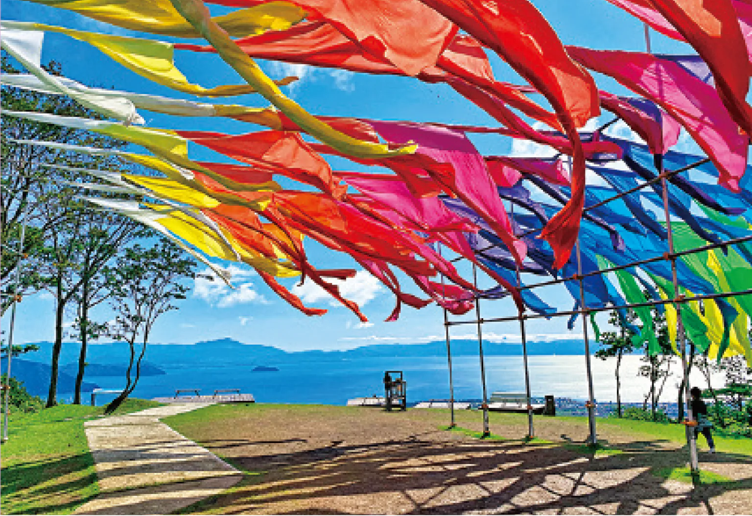 4ヵ所ある展望デッキの代表的スポットがこちら。無料レンタルの虹色アンブレラも新しく登場した