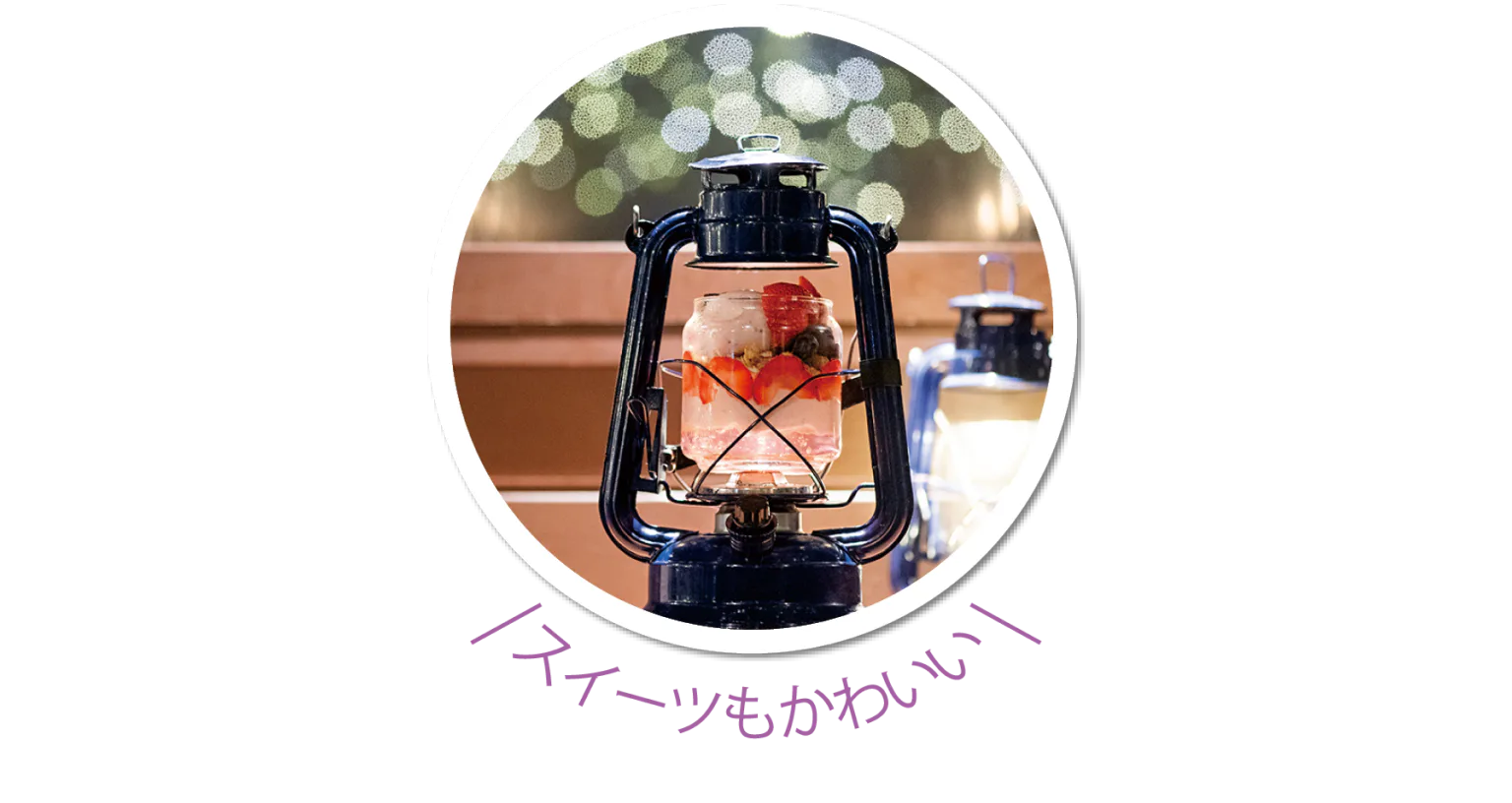 ランタンに入った「いちごパフェ」は、パフェ専門店LAMPで味わえる