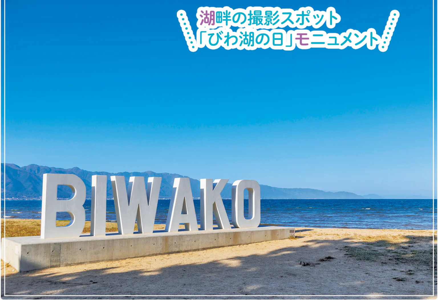 2021年、7月1日の「びわ湖の日」に誕生したモニュメント。びわ湖一周サイクリング「ビワイチ」のスタート地点やドライブの立ち寄りスポットとして人気を集めている。琵琶湖マリオットホテルのすぐ目の前。