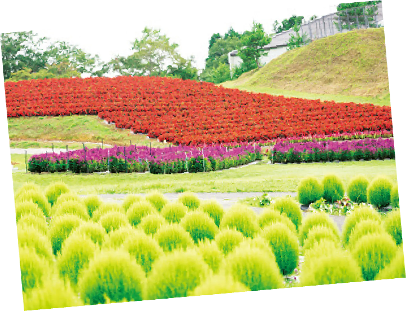 もこもこの形が愛らしいコキアは、秋になると真紅に染まる