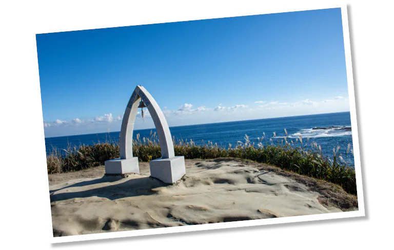 勝浦の鵜原理想郷ではリアス海岸の海岸美を満喫。ハイキングコースが設けられており、鐘付デザインベンチのある手弱女平(たおやめだいら)など、眺望スポットが点在