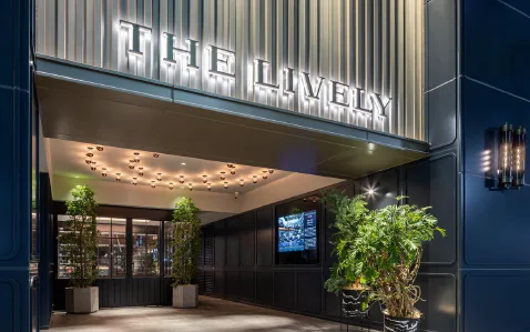 「自分をアップデートできる場所」がコンセプトの都会的なホテル。スマホから事前チェックインができるほか、地元情報を案内するキュレーターが常駐しており、ローカルな食事場所やおすすめの過ごし方を相談できるサービスも。2026年3月3日~5月31日の期間中、宿泊者を対象にした春の「HANA Me」企画を開催。お花見の情景を再現したアフタヌーンティー「HANA Me 弁当」や「飲むお団子」をテーマにしたドリンク、桜をイメージしたオリジナルカクテルがTHE LIVELY BARとルームサービスで味わえる。