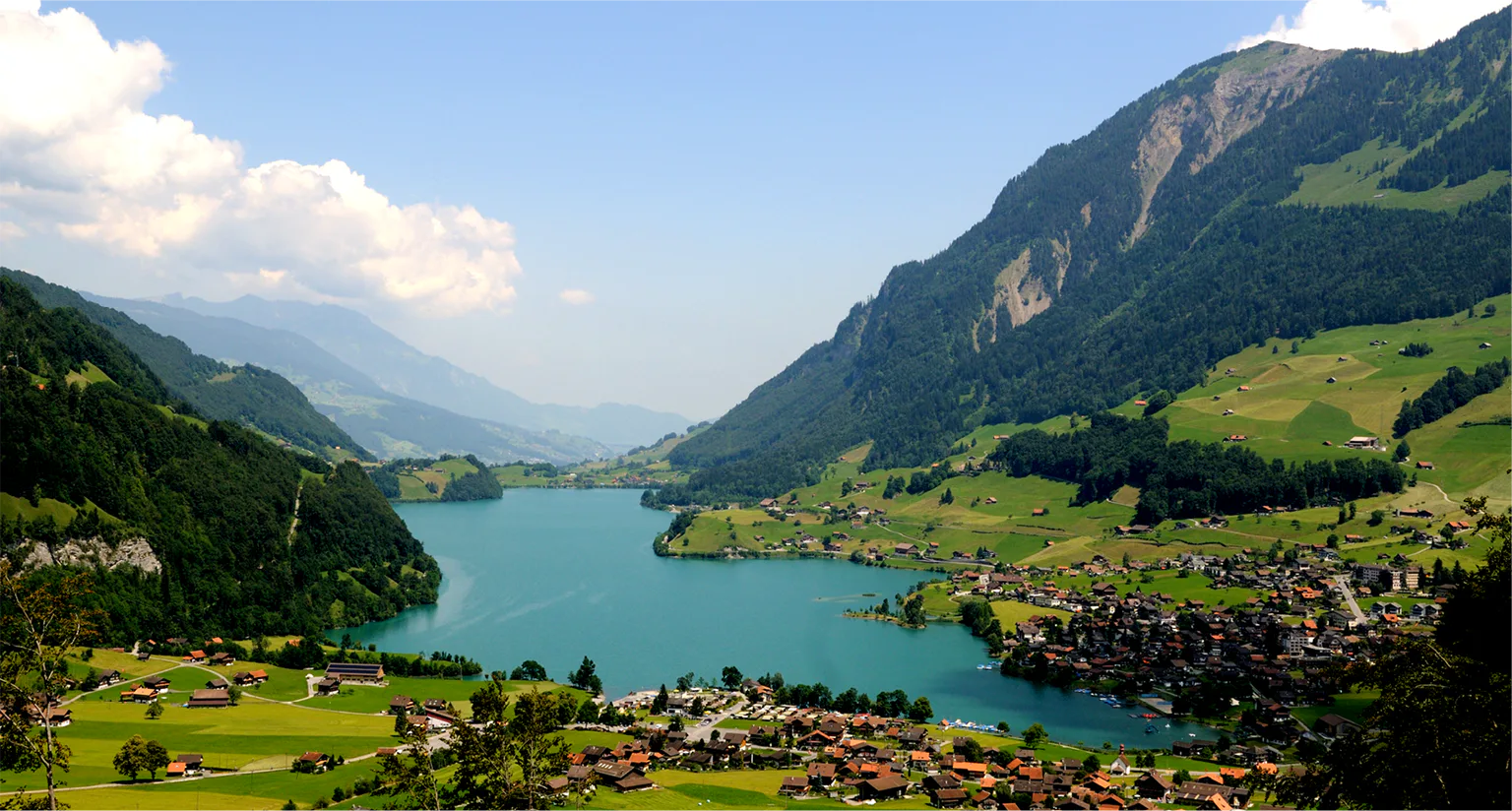 ブリエンツ湖やアーレ川がかわいらしい家々と織りなす景色や、お店で賑わうメインストリートなど、インターラーケンにはみどころが盛りだくさん