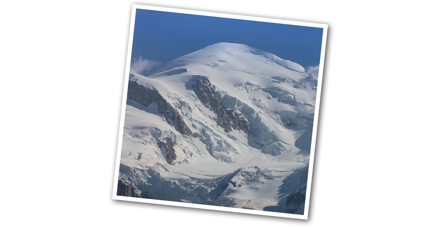 ヨーロッパ・アルプスのモンブランが目の前に広がる迫力満点の景色を眺める。レストランや売店、景色をより楽しむためのスポットも多数用意されている。雄大な自然がつくり出す白銀の世界。