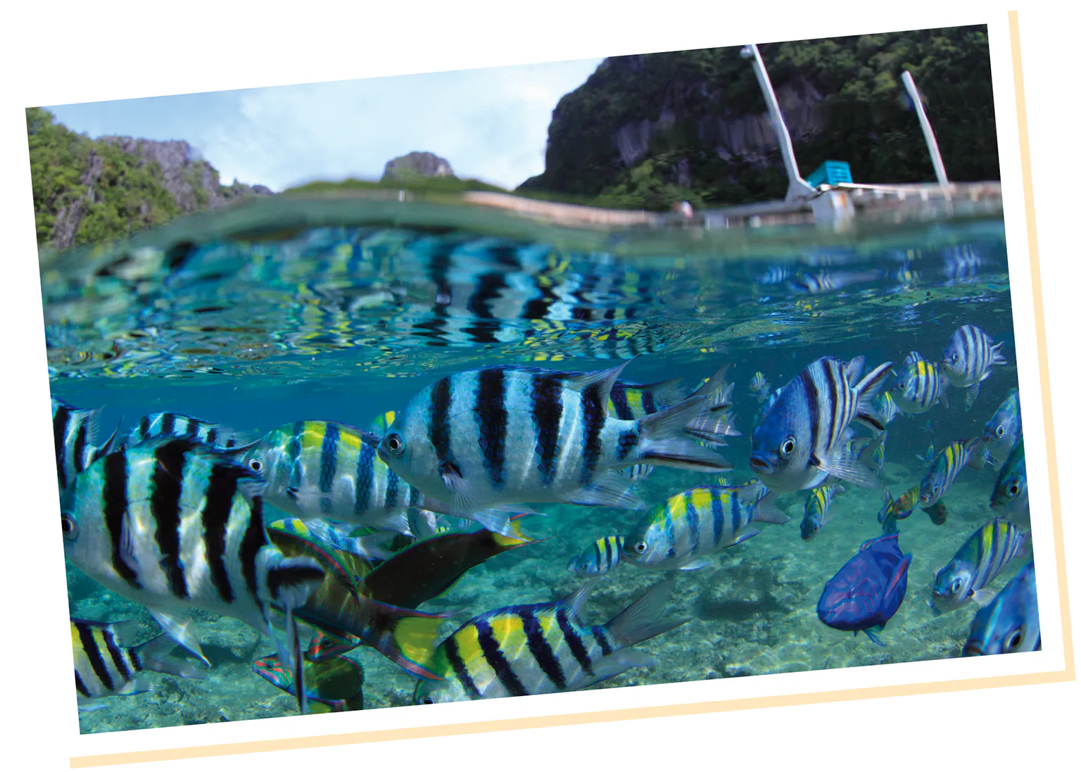 マクタン島沖に浮かぶ島々を巡る、セブで一番人気のオプショナルツアー。透明度の高い海は魚影が濃く、シュノーケリングに最適。