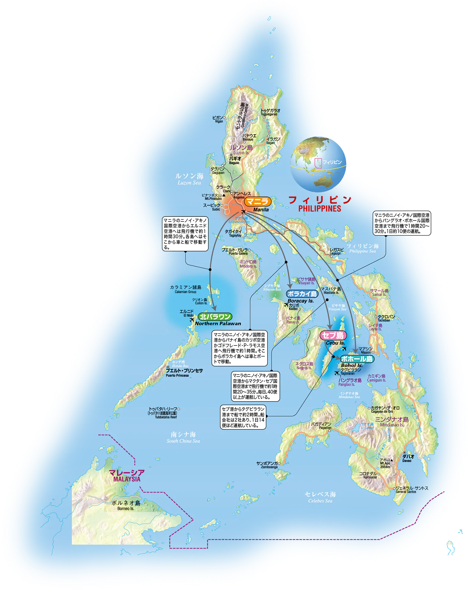 大小7641の島々からなるフィリピンは、島によって雰囲気や遊び方が異なる。どんな休日を過ごしたいのかをイメージして行き先を選ぼう。