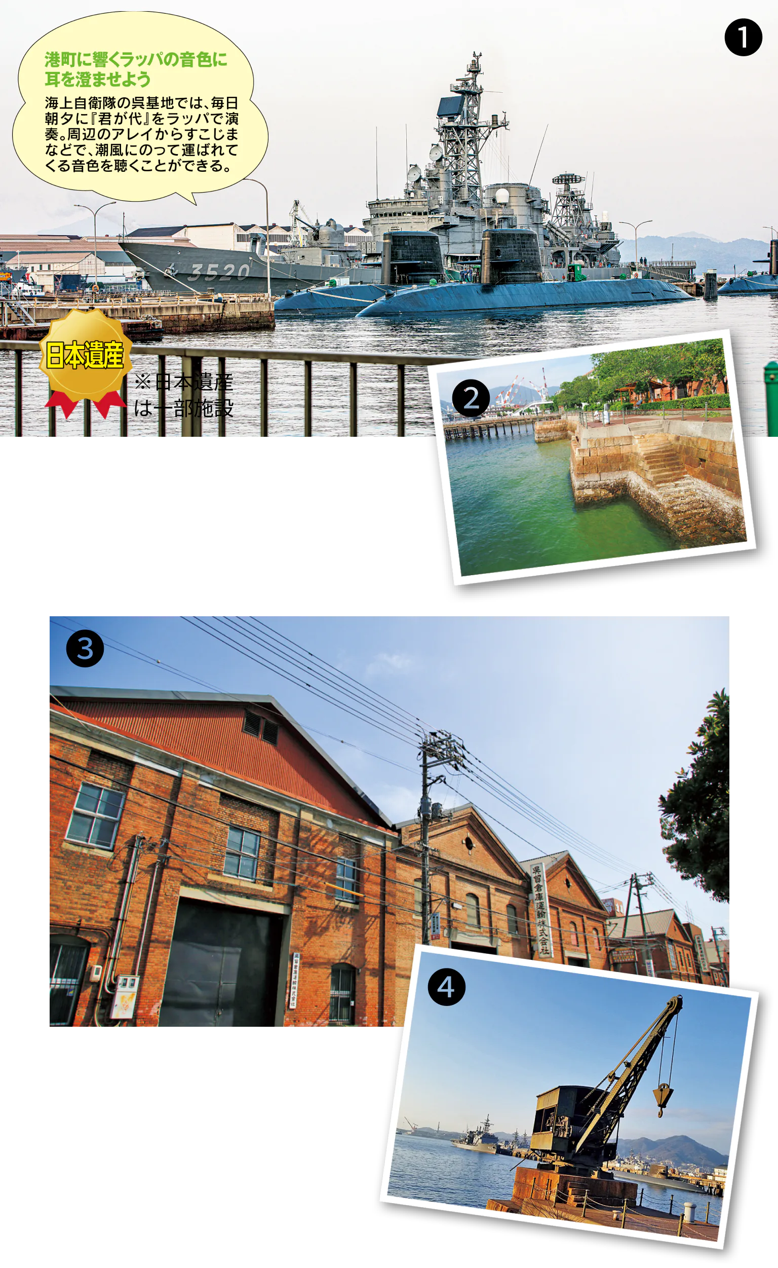 戦艦「大和」を建造したドック跡や旧呉鎮守府庁舎など、呉の歴史を感じることができる。