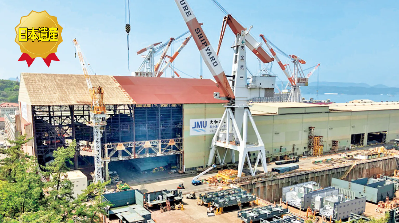 クルーズのみどころの一つは、戦艦「大和」の命名・進水式を行ったドック跡。長さ101m・幅63mで、骨組みは旧海軍時代のまま。現在は造船所となっており、世界最大級のタンカーが見られることも。