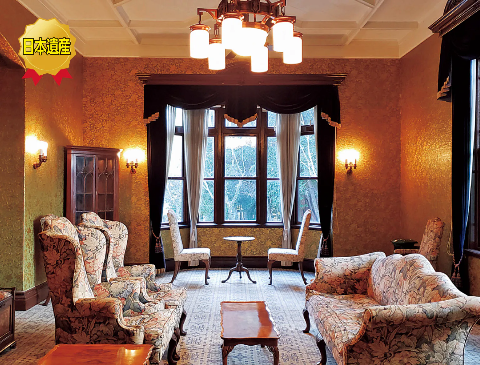 金唐紙を壁紙に使用した豪華な洋館部客室