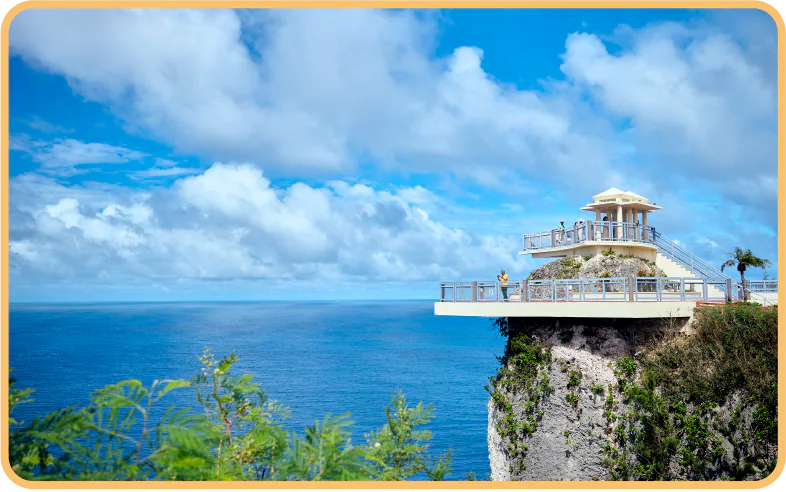 約122mの断崖からタモン湾を一望できる「恋人岬」は、夕日の名所としても人気