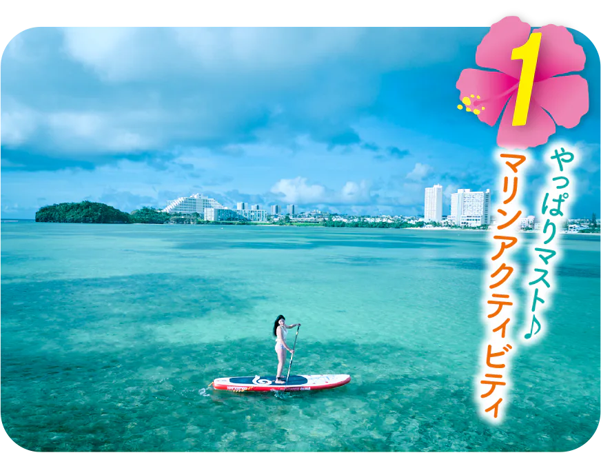いったんホテルに戻り、午後はタモンビーチの散策などを楽しもう。体力に余裕があればマリンアクティビティに挑戦。グアム・オーシャン・パーク/Guam Ocean Parkは、島内最大級のマリンスポーツ施設。パラセイリングやウェイクボードなどアクティビティも多彩。サニー・ダイバーズ/Sunny Diversでは、ジェットスキーで恋人岬までのツーリングも楽しめる。