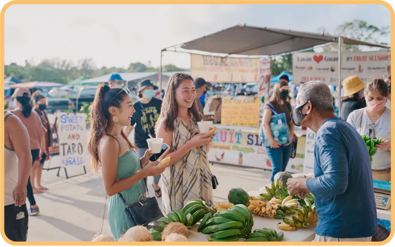 ホテルに荷物を預けた後は、デデドの朝市/Dededo Flea Market(土・日曜のみ開催)へ。屋台で買った郷土料理を朝食代わりにつまみながら、ローカル気分を満喫しよう。平日に到着する場合や、お腹が空いている場合はホテルに向かう前に空港から車で5分のところにあるキングス・レストラン/King's Restaurantで朝食をとるのがおすすめ。