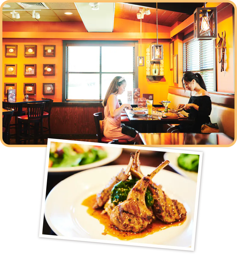 カジュアルで利用しやすい「ロングホーン・ステーキハウス」。ボリューミーな肉料理は焼き加減が絶妙と人気