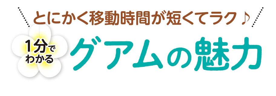 グアムは日本の南約2500kmに位置しており、日本との時差は1時間。直行便を使えば、約3時間30分で到着する。長期の休みを取る必要がないので、週末などに気軽に出かけられるのがうれしい。