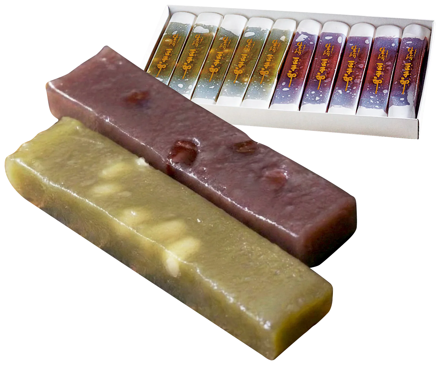 蜜で炊いた大納言小豆が利いたやわらかな口当たりのういろう。小豆・抹茶の2種 ※価格変更の場合あり
