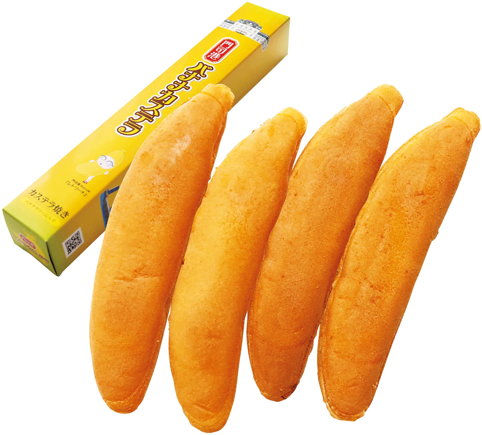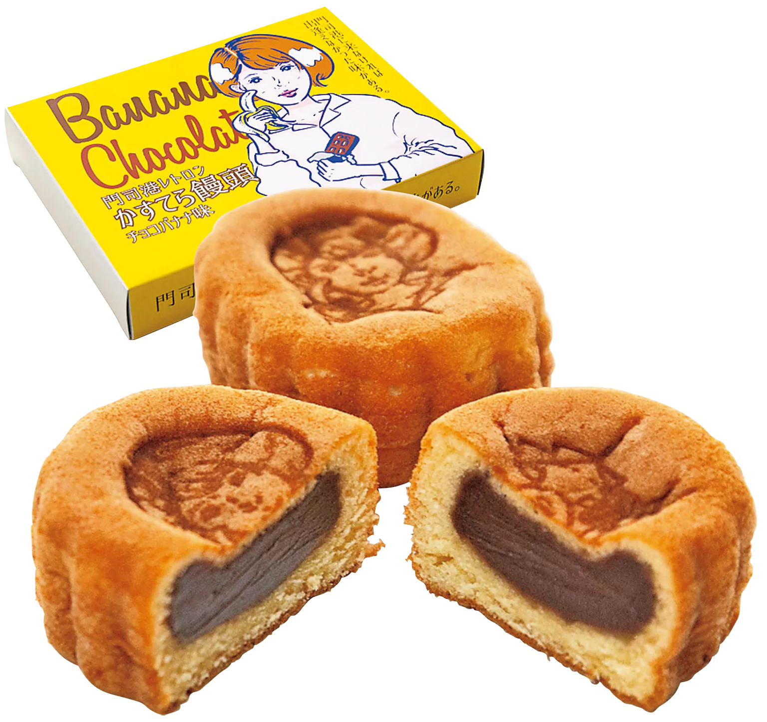 カステラ生地はしっとりした食感で、チョコバナナ味のこし餡にマッチ