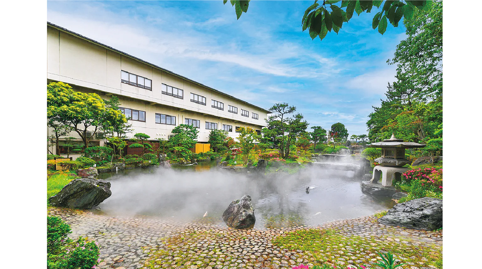 2023年に創業60周年を迎えた温泉旅館。あわら温泉屈指の客室数を誇り、7000坪の広大な敷地には純和風庭園が広がる。煌粋殿 さくら亭、離れのここみち亭やゆとろぎ亭、別邸の個止吹気亭(ことぶきてい)など多彩な客室が揃う。