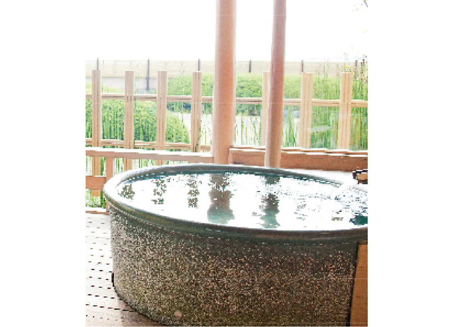 自家源泉かけ流しの天然温泉で、保温効果の高い食塩泉。24時間入浴可能
