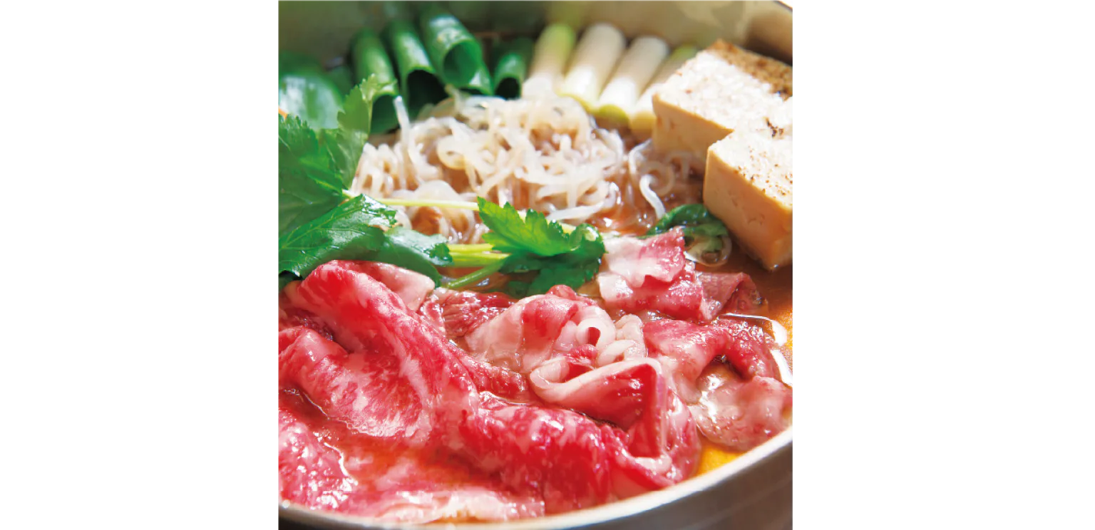 店内にはすき焼きとしゃぶしゃぶを提供する日本料理店、洋食店、カレーショップがあり、好みのスタイルで絶品の肉料理が味わえる。