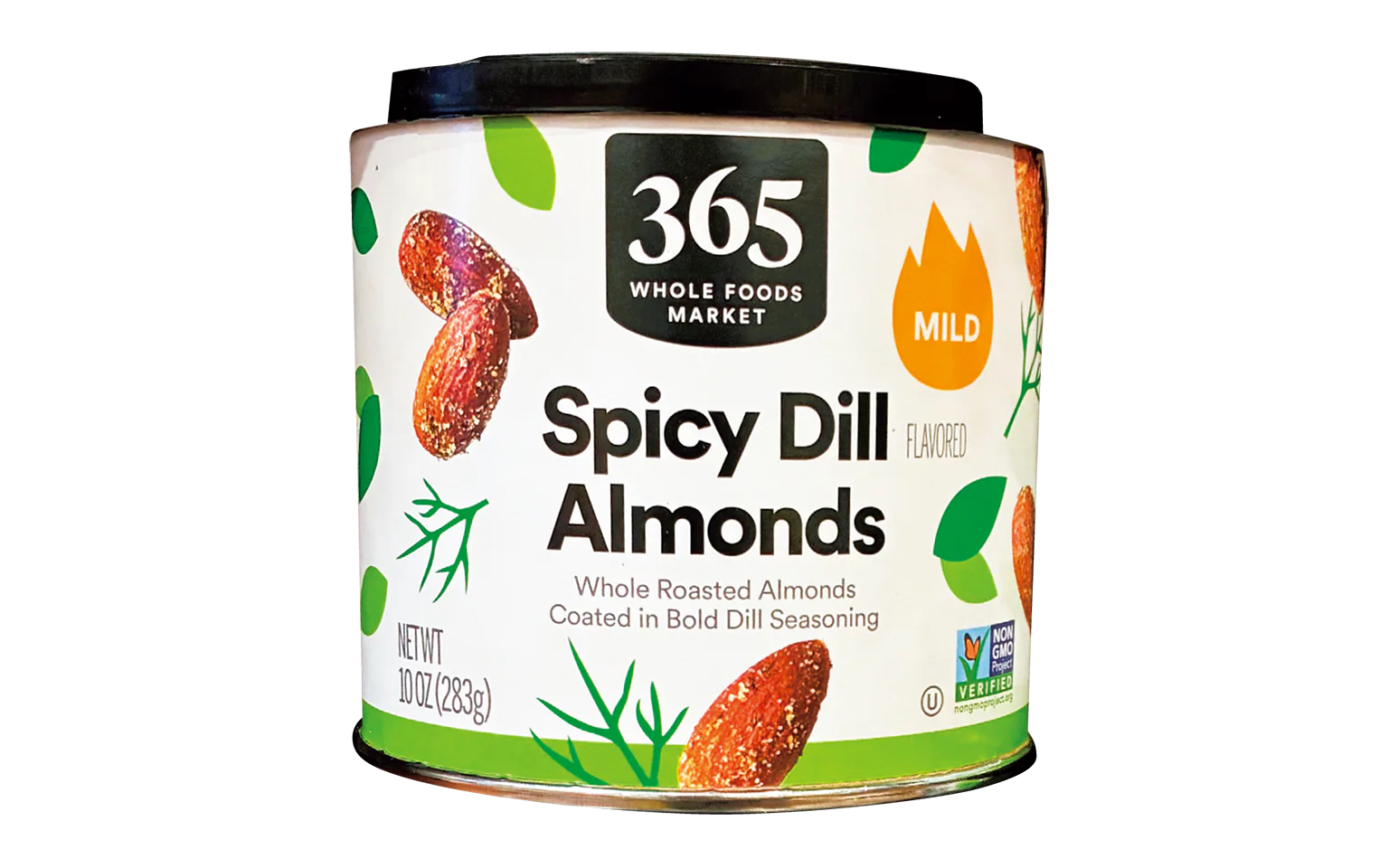 スパイシー・ディル・アーモンド。缶入りのスパイシーアーモンド。$7.99