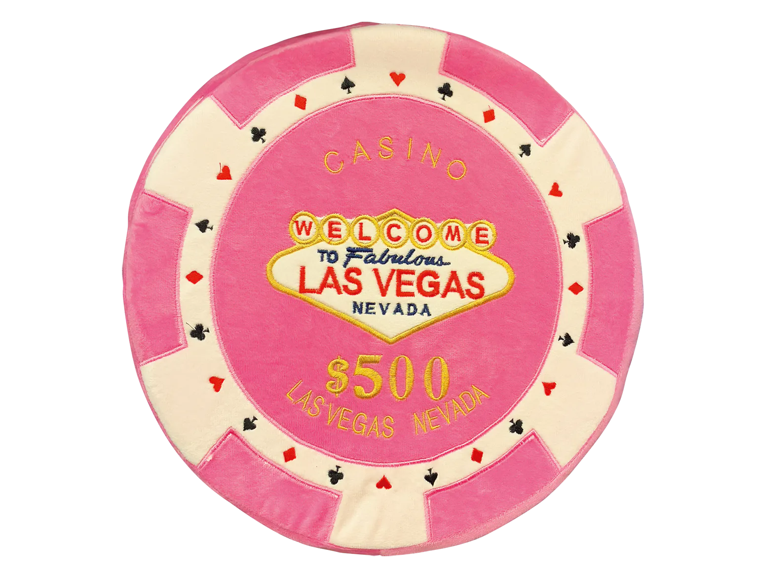 ピンク色がキュートな$500のカジノチップを模したクッション