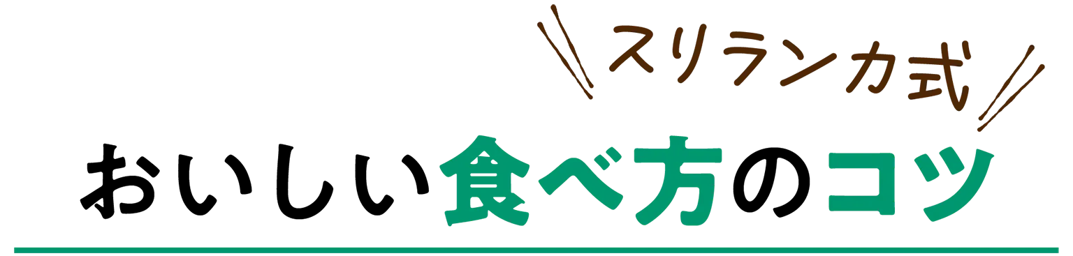 スリランカでカレーを食べるときはまずお皿の真ん中にごはんを盛り、まわりにカレーやサンボルを数種類とります。そして少しずつ数種類を混ぜながら食べるのがコツです。毎回混ぜるものを変えると味わいの変化が楽しめますよ。