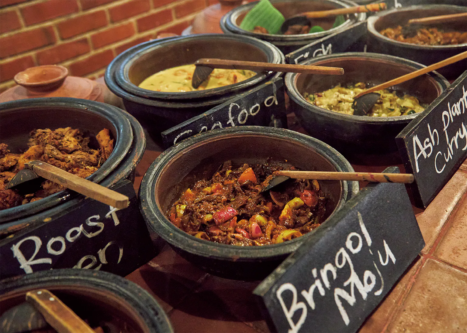 スリランカの伝統的な村の様子を再現した屋外レストラン。小さな畑などもありコロンボ市内にあるとは思えないほど。カレー中心の正統派スリランカ家庭料理をビュッフェスタイルで楽しめる。生演奏の時間に合わせて行くのがおすすめ。