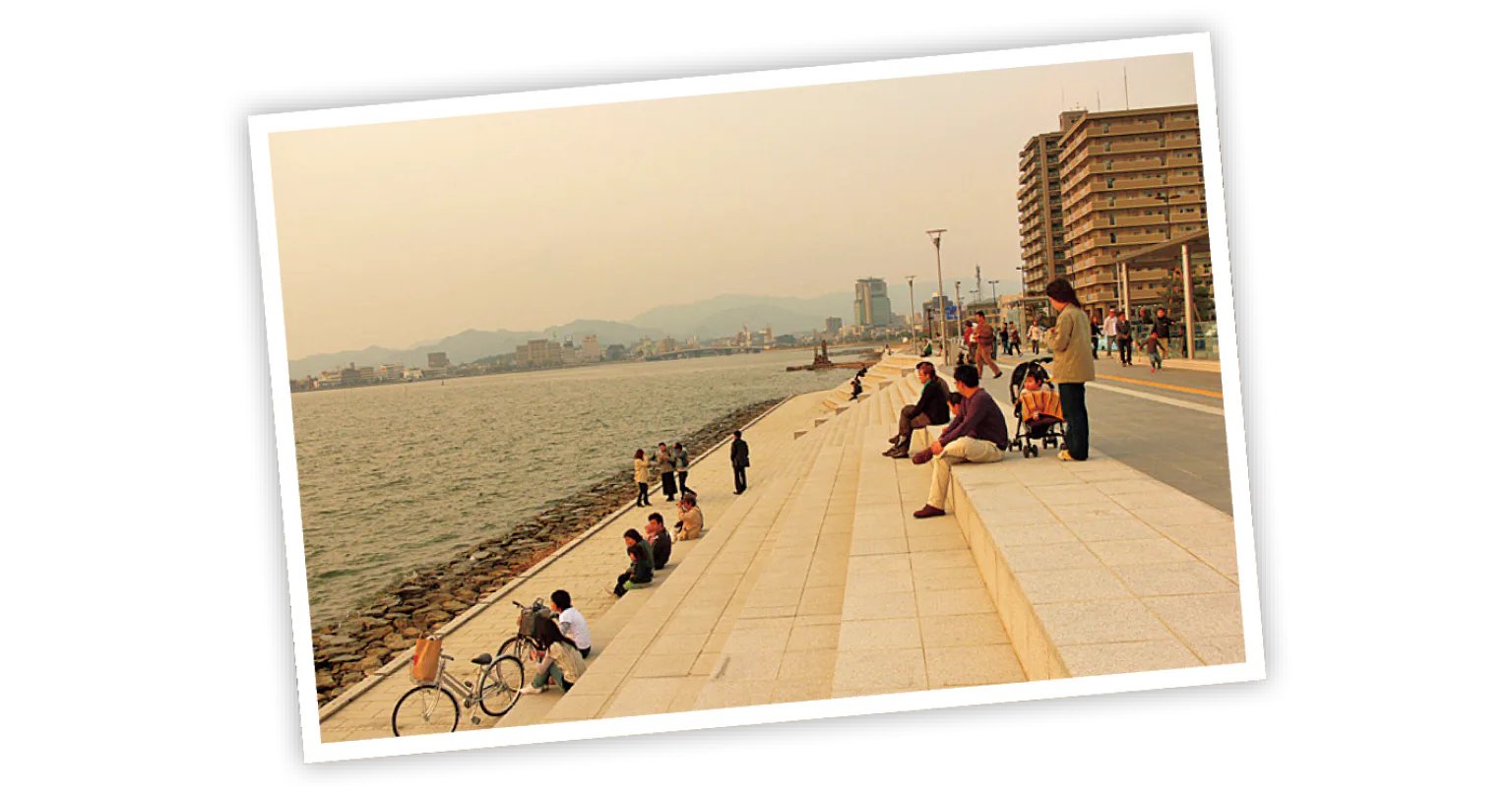 島根県立美術館に隣接し、多くのモニュメントが野外に展示されている。昼間と夕暮れどきで表情の違いが楽しめ、絶好の撮影スポットになっている。縁結びのご利益があると噂の「宍道湖うさぎ」も。写真は、神々の国出雲を意識した『風門』越しに見る夕日。