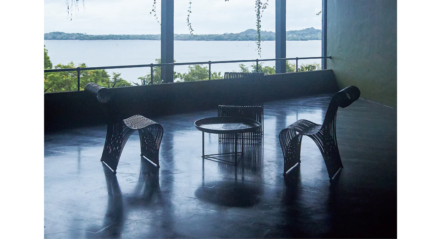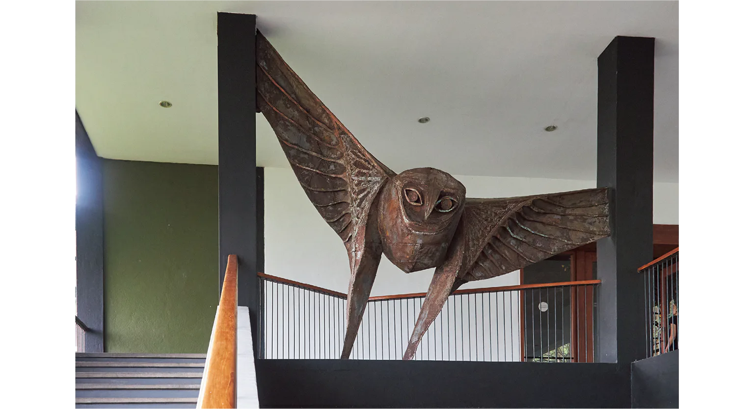 建築だけでなく家具などのインテリアにも注目。特に彫刻家ラキ・セナナヤケによるフクロウのオブジェは必見。椅子はバワがこのホテルのためにデザインした。
