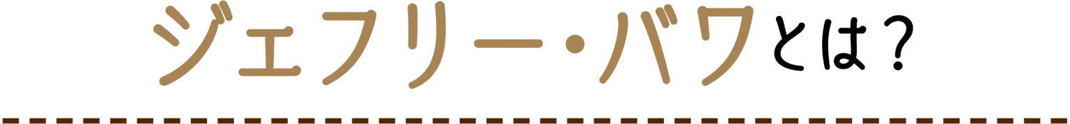 コロンボ生まれ(1919-2003)。ロンドンで弁護士となった後、建築家へと転向。母国スリランカの風土や自然と一体化するような独自の建築スタイルを生み出し、後の建築家やデザイナーに影響を与えた。西洋建築と一線を画す「熱帯建築」「トロピカル建築」の第一人者とされる。