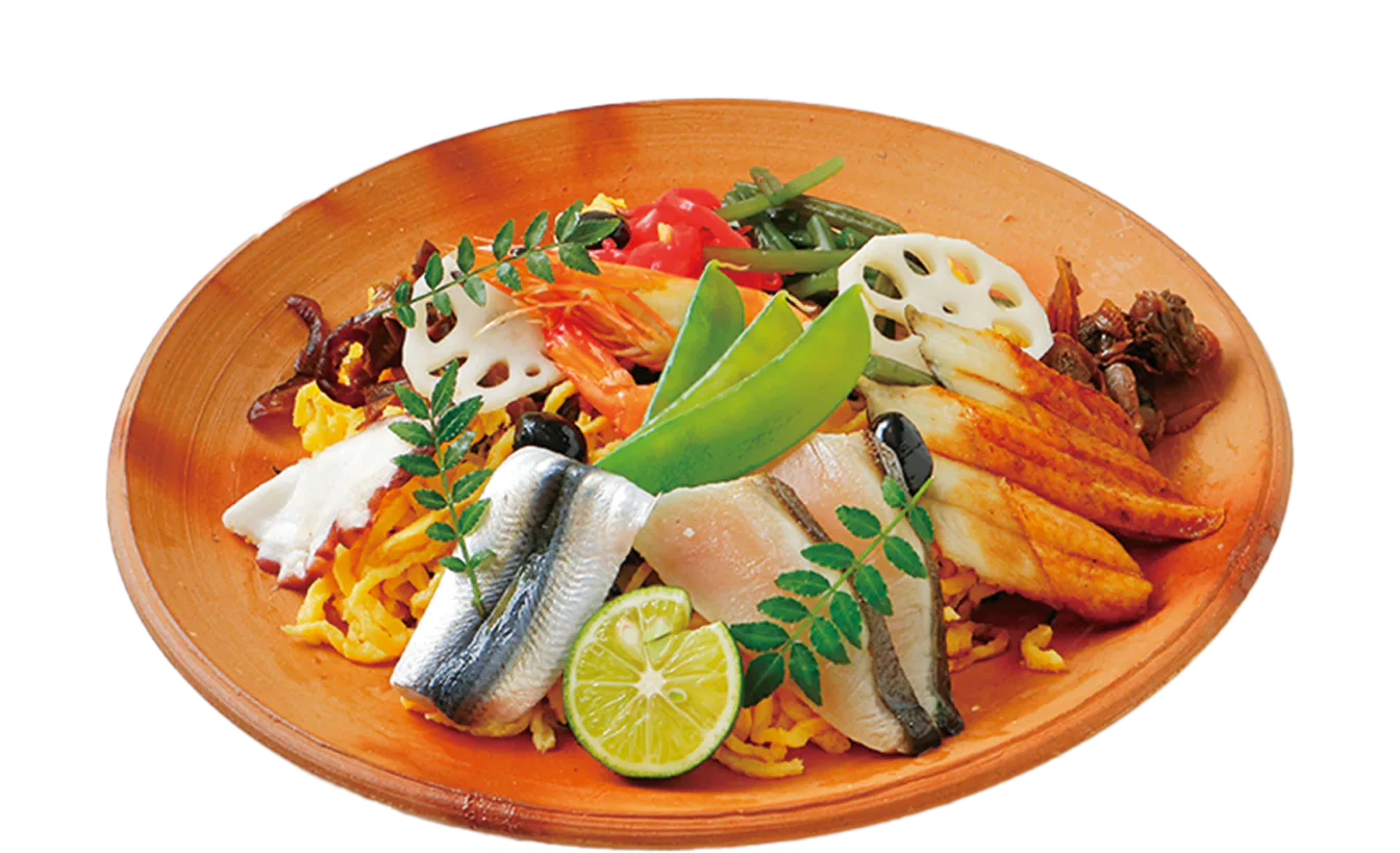 ばら寿司、デミカツ丼など瀬戸内や岡山の食材をふんだんに使った名物料理