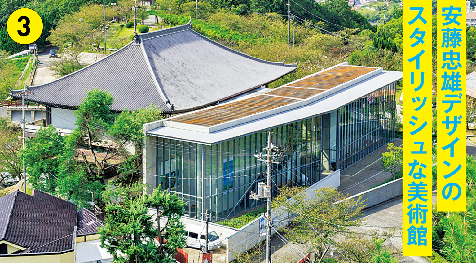 国内外の美術品を所蔵し、年間を通じて企画展を開催。安藤忠雄氏設計の建物は、全面ガラス張りのロビーなどそれ自体がアート。