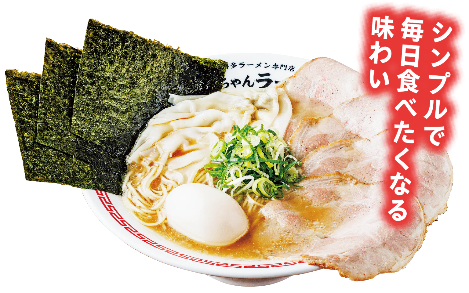 とんこつのうま味と、ほんのり感じる甘みがクセになるスープが特徴。細麺との相性も抜群のラーメン。