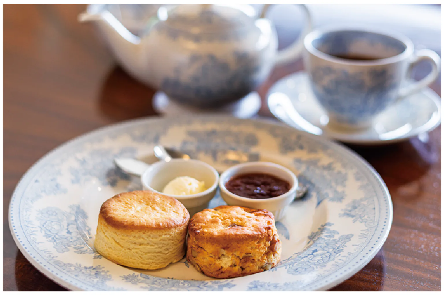 英国大使館別荘記念公園の2階にあるティールーム。駐日英国大使館シェフ監修の本格的なオリジナルスコーンセット3000円などを提供。(料金は変更の可能性あり)