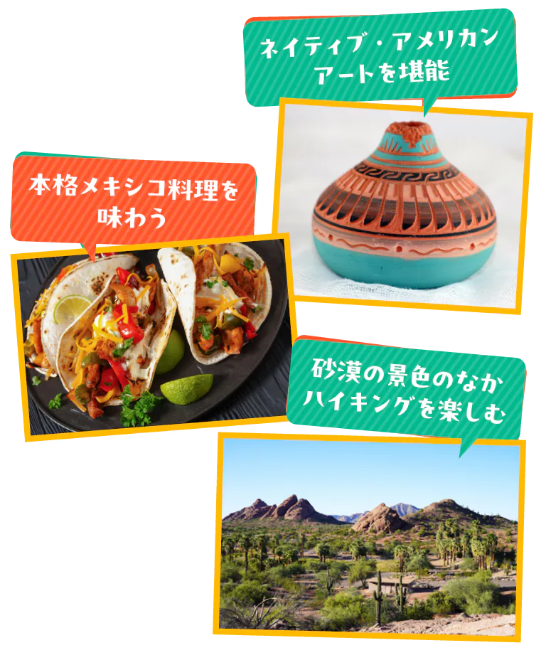 南はメキシコ、西はカリフォルニア州に隣接する、アメリカ南西部のアリゾナ州。年間300日以上の晴天に恵まれ、一年を通じて温暖な気候なため、保養地としても人気が高い。そんな州の中央に位置するのが州都・フェニックスだ。開拓時代の面影を残した街並みやネイティブ・アメリカンの芸術や歴史、大自然が作り出す造形美に惹かれ、多くの観光客が訪れる。