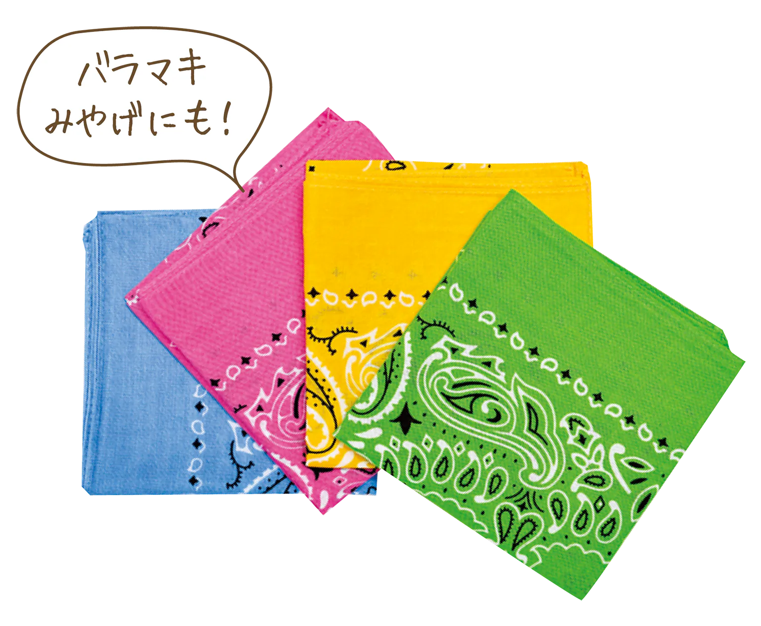 何枚あってもうれしいバンダナは、まとめ買いが◎。4枚で120P。