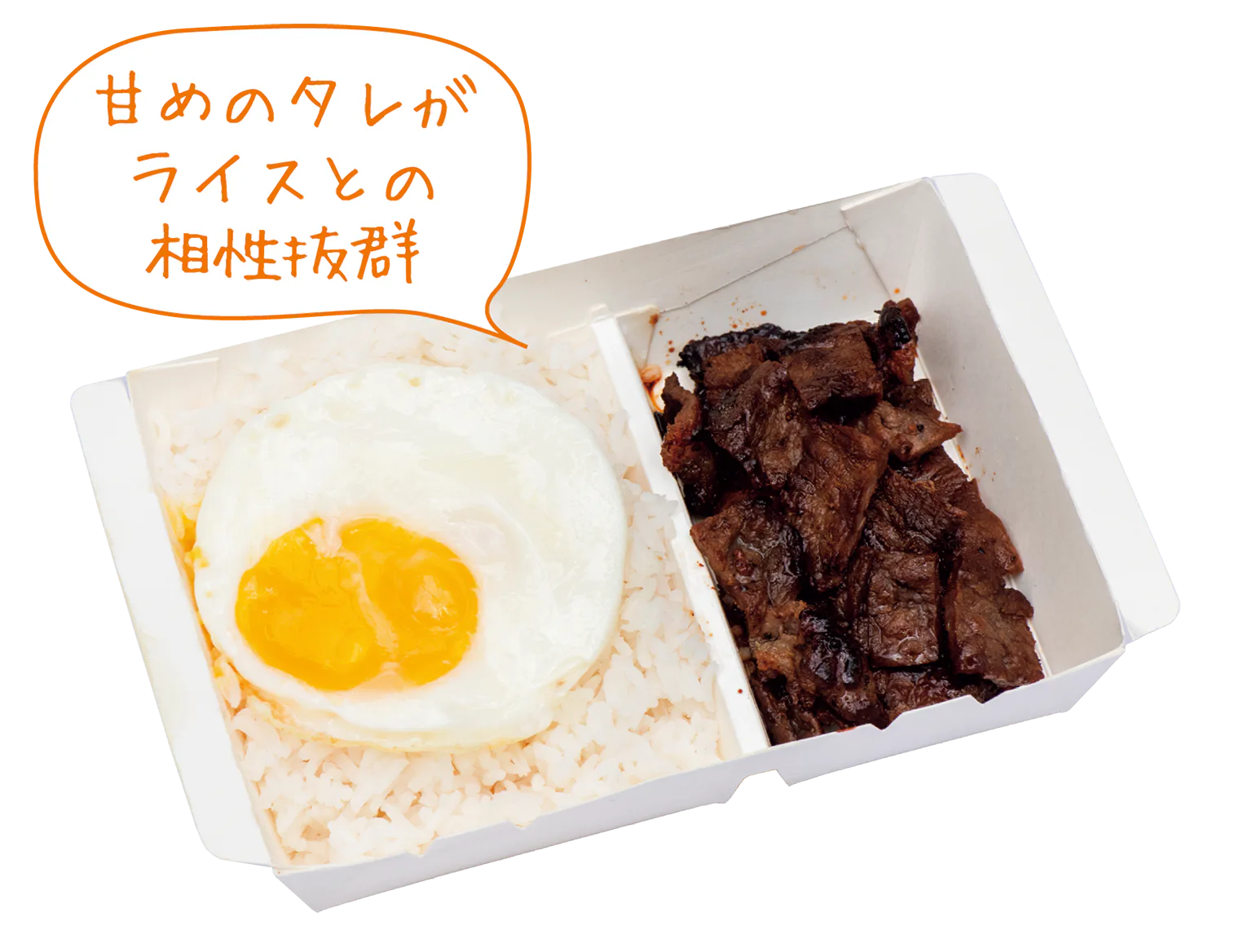 タパとは牛肉の漬け焼きで、タプシログはガーリックライス&目玉焼きのセット。朝食の定番!