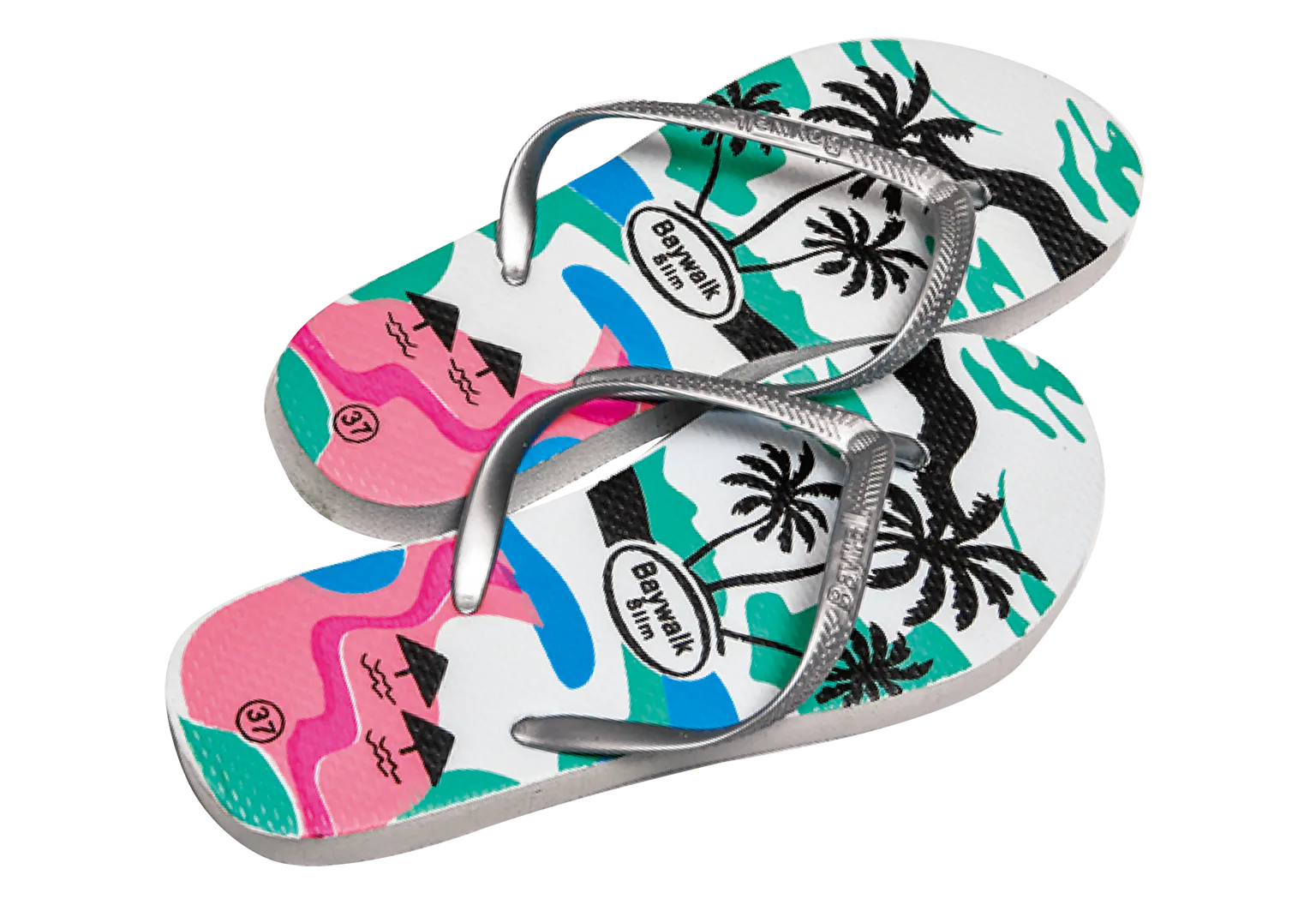 ビーチサンダル100P〜。露店に店名はないので、歩いて見つけよう