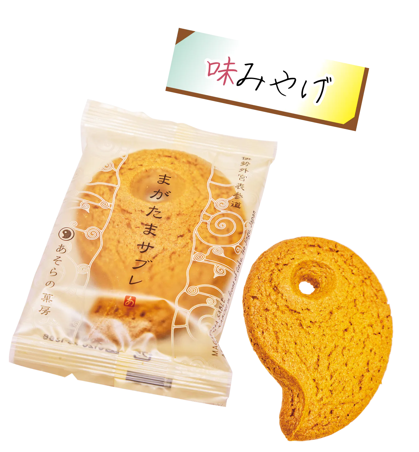 勾玉をモチーフに一枚一枚ていねいに焼き上げたサクッとした食感の本格サブレ