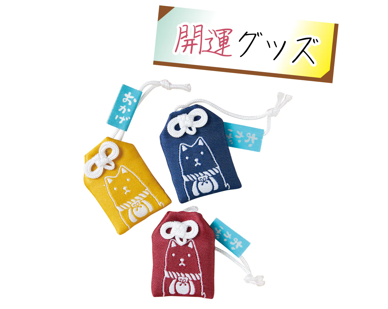 犬をかたどったかわいい木札が入ったお守り型の小さなストラップ